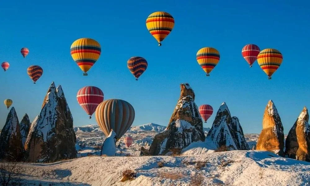 Kapadokya, yazın olduğu kadar kışın da büyüleyicidir. Karla kaplanan peri bacaları ve beyaz örtüyle masalsı bir görünüme bürünen vadiler, ziyaretçilere unutulmaz bir deneyim sunar. Balon turlarıyla beyazlara bürünmüş Kapadokya’yı gökyüzünden izlemek de oldukça popülerdir.